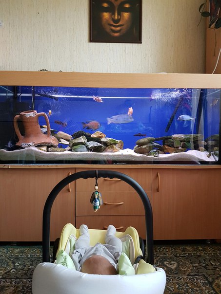А ещё у неё выросли длинные крученные ресницы, потемнели.)) Брови также загустели, потемнели...А вот головушка пока лысовата)) Кожа смуглая с рождения как у Маугли) Мы шутим, что две поездки в Тайланд за время беременности не прошли бесследно.)) Говорят, что бесконечно долго можно смотреть на огонь, воду, еще что-то там...а я бы еще добавила к этому - лицо своего ребёнка)) Могу смотреть на неё часами не отрываясь - и не могу наглядеться)) Иногда это создаёт интересный эффект относительности - когда вечером приходит домой муж - его голова или лицо мне кажутся нереально огромными))