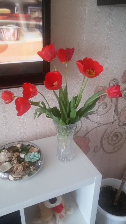 А это муж мне принес мои любимые тюльпаны )))ммм обожаю)))