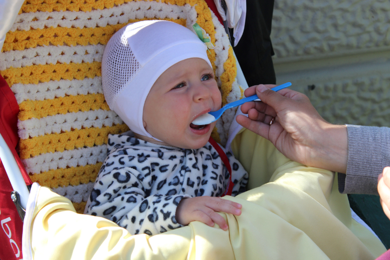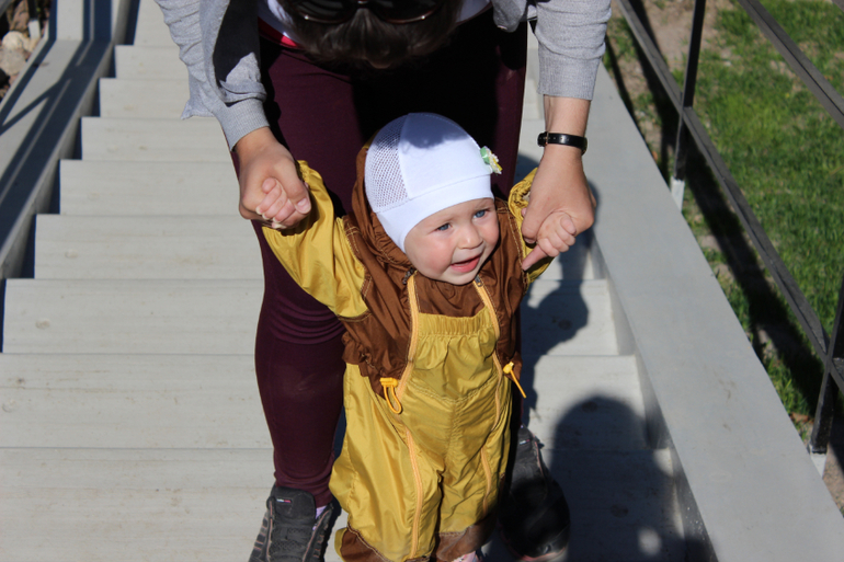 Съездили очень хорошо. Выехали из дома как раз перед первым дневным сном. В машине она поспала. Приехали, покормили, пошли в парк. Ане очень понравились фонтаны - полный восторг. Правда через 2,5 часа она у нас вырубилась от обилия впечатлений, проспала час и пошли гулять дальше. На обратном пути тоже поспала полчасика. В общем, находились все: и мы с мужем, и Анюта. Аня очень много ходила пешком за ручки и по лестницам поднималась (это наша новая фишка - один раз показала - очень понравилось).