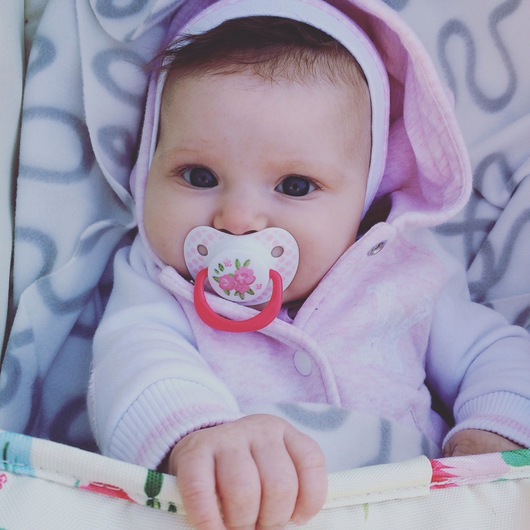 Ух какая красоточка! И волосики уже есть. И пустышка в цветочек красивая👍