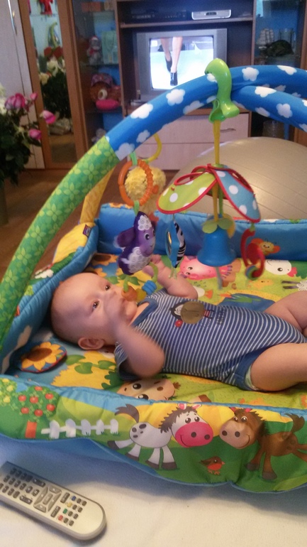На рождение родственники нам подарили замечательный коврик. Сейчас уже не играем, но до 6 месяцев использовали регулярно.
