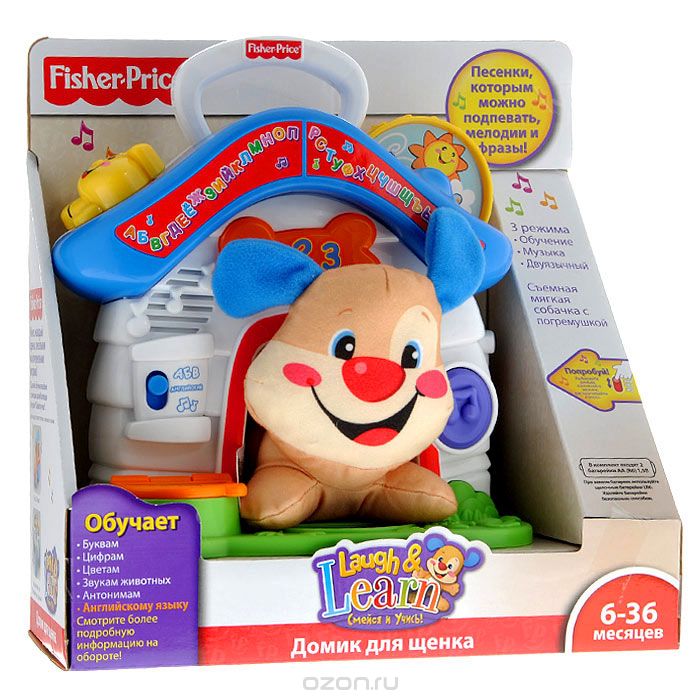 На новый год Ваня получил собаку с домиком от фишер прайс - одна из любимейших игрушек