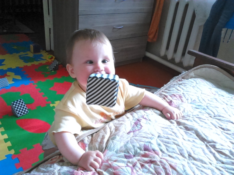 Еще доча учится стоять без опоры, пока получается недолго, но активно. Перемещается вдоль любых предметов, психует, если не дотягивается до приглянувшихся вещей.