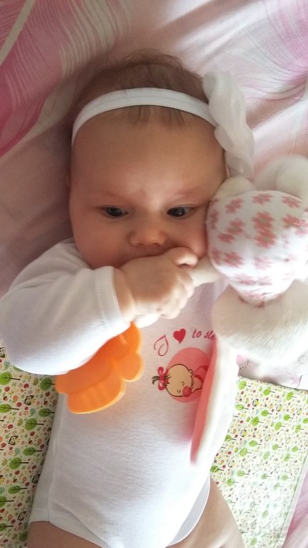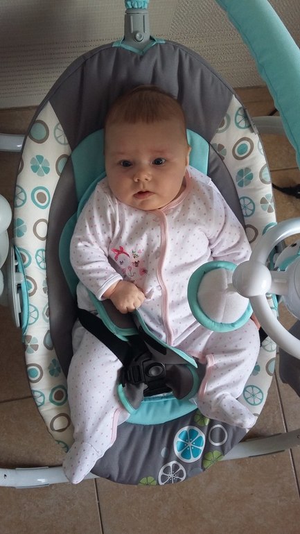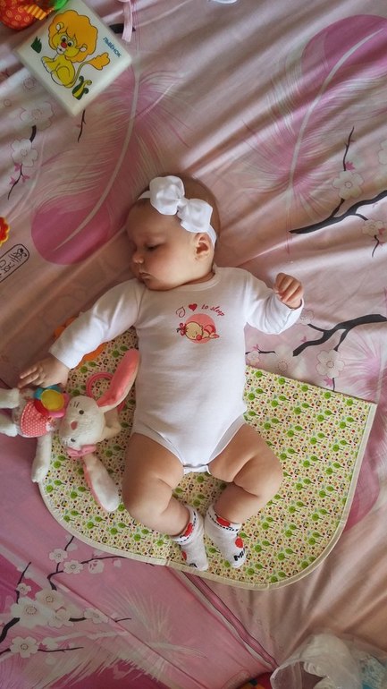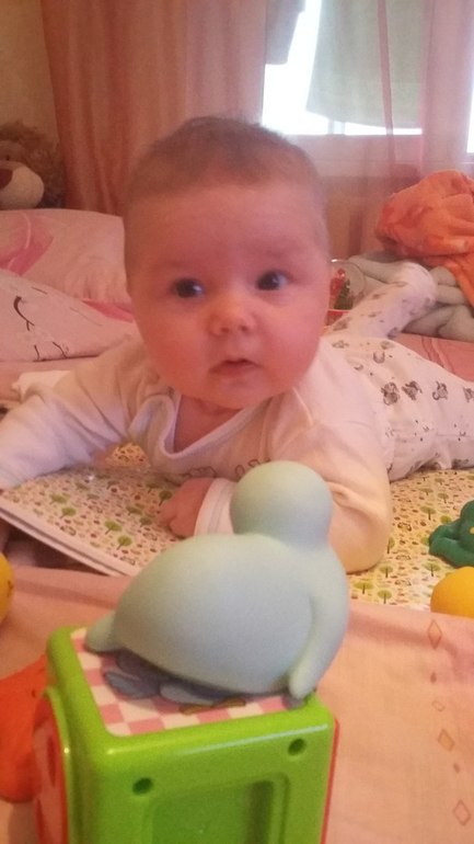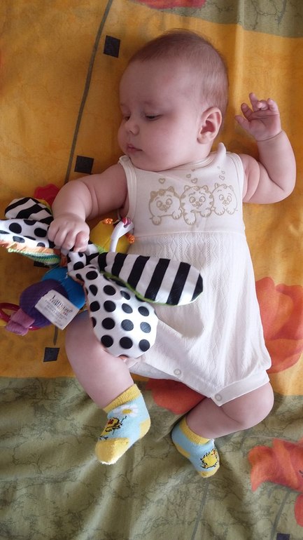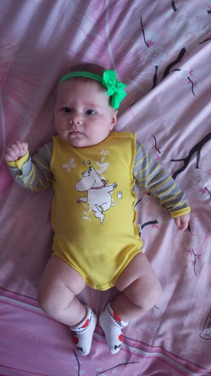 . Пересели мы уже в сидячий блок в коляске, так как манюня наша голову поднимает с тельцем, как буд то хочет встать и посмотреть, что же там такое интересное творится))) В итоге, как только пересели в полулежачие состояние, сладкая наша не хочет вообще находиться в коляске и теперь всю дорогу носи ее на руках и показывай листочки, цветочки и кошечек с собачками. А как любит когда на детской площадке гуляем, детвора бегает и она голову то суюда то туда за ними)))) Замечаю, взгяд взрослый и осознаный у дочи, время так быстро летит, не успеваю насладиться, в четырех месяцев стала давать овощи, ну об этом уже в следующем посте, когда нам будет 5 месяцев! Очень счастливы, что с нами наша сладкая девочка, зацеловываю ее всю постоянно, а она мне в ответ улыбашечку беззубую и счастье переполняет меня!