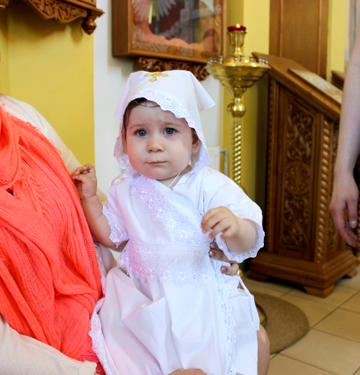 Крещение прошло хорошо, мы были одни, но в конце Ева поплакала немного, обиделась, когда ее поливали водичкой в купели)))