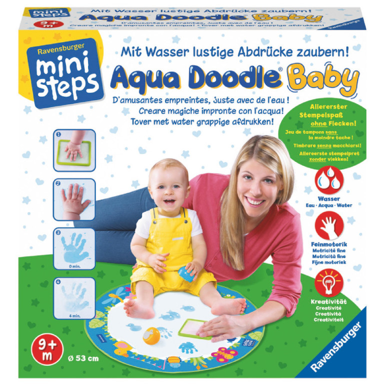 3) Краски. Я купила водяные краски. То есть ребенку достаточно намочить ладошки и вот уже можно рисовать мокрыми руками на поверхности.