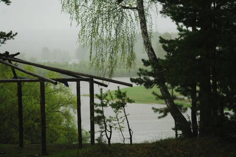 Начинается он очень рано по городским меркам: с 6 до 7 утра. Как только прямые солнечные лучи начинают светить в окно. Через одну секунду при желание я могу уже оказаться на улице: босиком, в одной майке, нечёсаная и неумытая. Прямо перед крыльцом разворачивается сосновый лес - оттуда идёт дурманящий сладкий аромат тёплой земли и хвои. Оркестр из самых разнообразных птиц уже исполняет свои неповторимые произведения на все лады. По соседству тарахтит трактор, под крыльцо шмыганул уж, предварительно пошипев на меня.