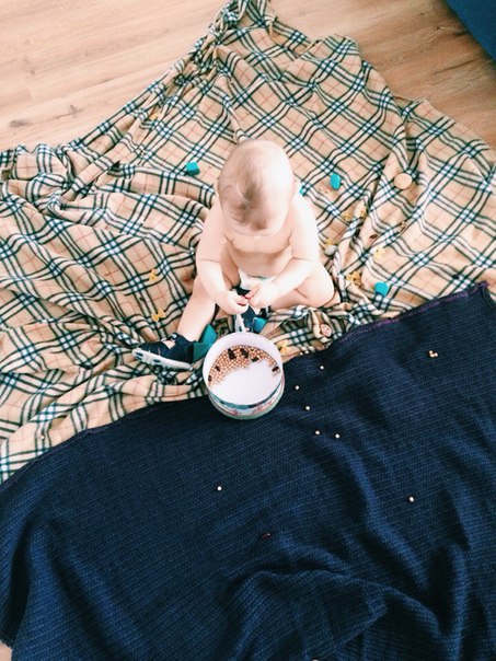 Ваш, смотрю, сидит смирно, играет, а у моего шило в попе не одно, поэтому сидеть на месте больше 2-х минут он не умеет, ползает по всей квартире и разбрасывает все, что в руки попадается)).