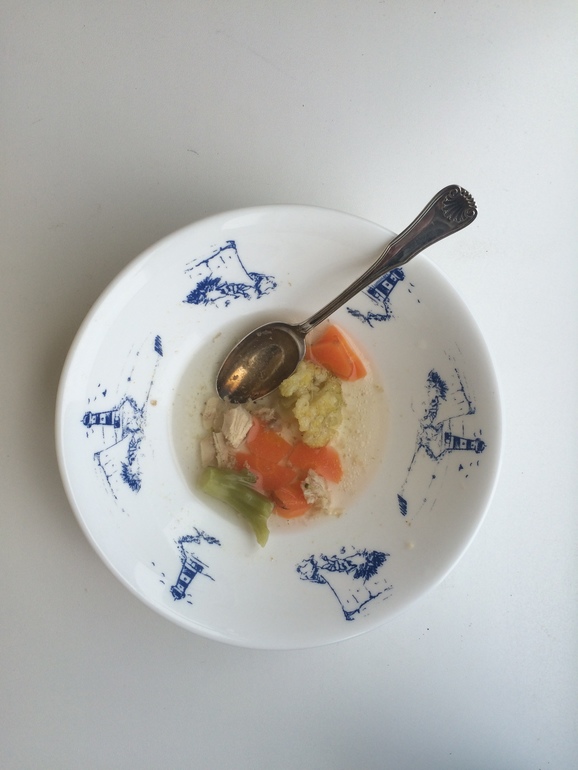 И потихоньку, потихоньку сын стал хлебать суп из ложки со всем этим добром!