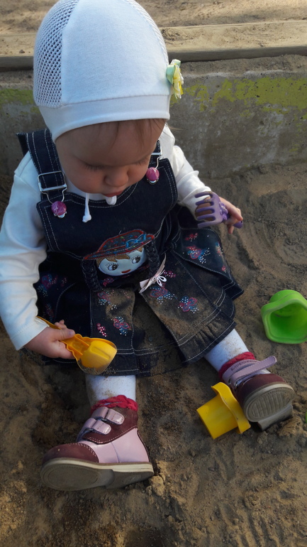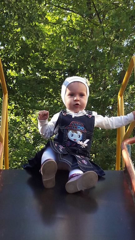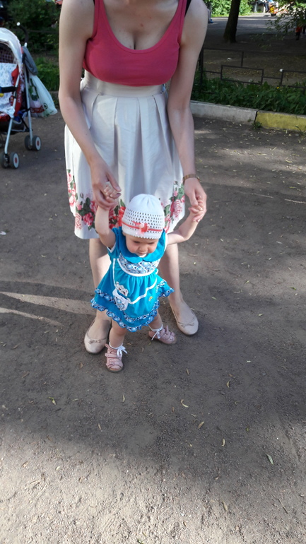 Умелки. В этом месяце Анюта стала очень уверенно ходить за 2 ручки, хорошо ходит за одну ручку и даже пару раз делала шаги без опоры. Собираем пирамидку, сортер (но не очень уверенно). Понимает много слов, сегодня на просьбу принести воздушный шарик принесла его дважды. Говорит 4 слова - мама, папа, баба, Аня. Научилась слазить с дивана/кровати. Научилась скатываться сама с горки. Хорошо на фотографии показывает маму, папу, собаку.