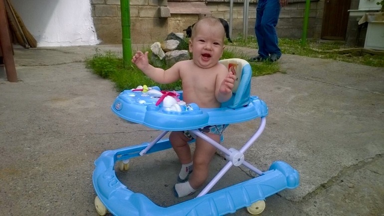 День проходит у нас: все тагже по режиму только теперь бодрствование 2-2,5 часа и 3 дневных сна. Подъем в 8-9 сон в 22:30 :) на бодрствовании он любит сидеть со мной на кровати играть пультом от телика потом шнурочками на шортах и конечно же лазать по мне как маленький обизьян:) обслюнявит и сделает пррррр в животик, потом в ходунки и в них гоняет по всему дому смело берет что хочет слюнявит бросает, пищит на собачку и кисууу и слушает свой голос. Игрушки его не интересуют воообщеее пожалуйста подайте ложки пакетики шуршащие чашечки разных форм коробки пульты телефоны ВСЕ но только не игрушки...