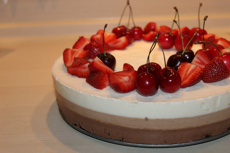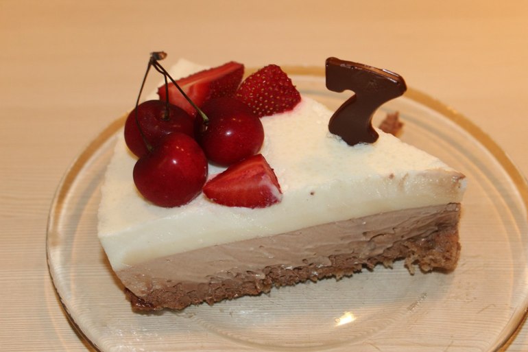 И наш торт по случаю 7 месяцев.Три шоколада.