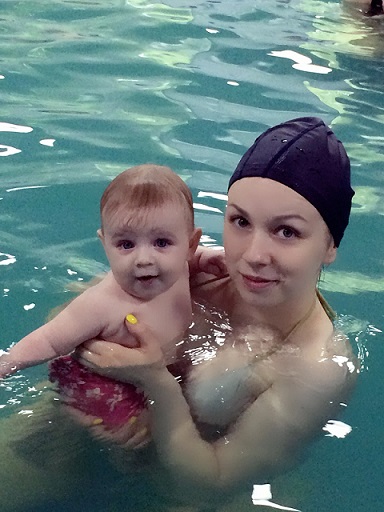 6) Все также продолжаем ходить в бассейн. Алисик уже без моей помощи и поддержки может проплыть на "колбасе", но перестала любить нырять(( После второго погружения начинает плакать. Приходится идти на некоторые хитрости и уловки, дабы навык задерживать дыхание не пропал.