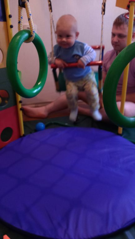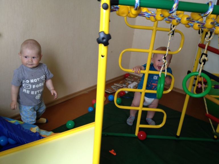 итак кратко все что мы умеем! амое главное что мы побежали!!! побежали в 10,5 месяцев! в конце мая(это для себя))). Кушаем с утра кашку, в 12 с нами нашу еду, в 4-5(как проснемся) овощное пюре или сучик. В 7 фруктовое пюре, в 8 еще можем чуток взрослой еды перекусить и 9 кашка на ночь))) просыпаемся 2 раза ночью. Днем спим один раз, с 1 до 4-5. Совсем вырос мой пупсик. Любит прятки, догонялки, дает "пять", показывает только ежика))) подарили на др огромный детский спортивный уголок почти на всю комнату, что он там творит