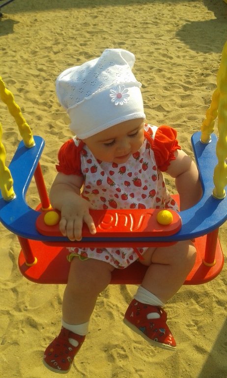 Вчера мы с моим папой ее тренировали - сначала один шажок, потом два, четыре ... Сначала ко мне, затем к коляске, потом к деткам на площадке. Вот он двигатель прогресса - желание