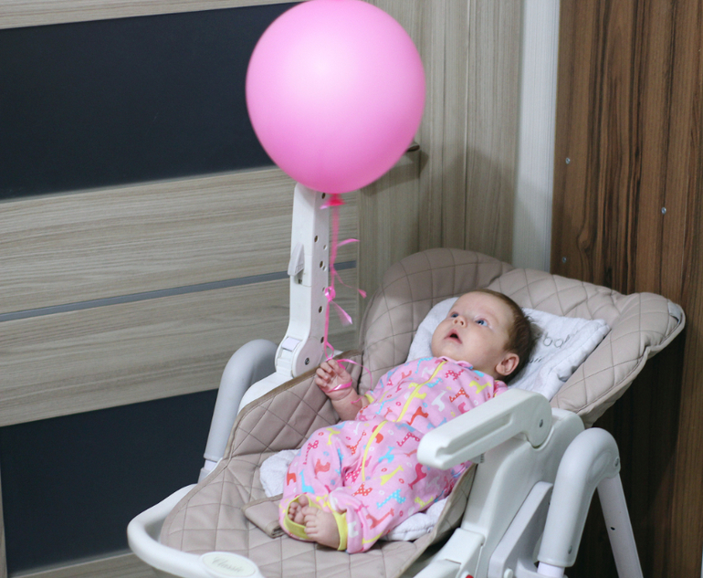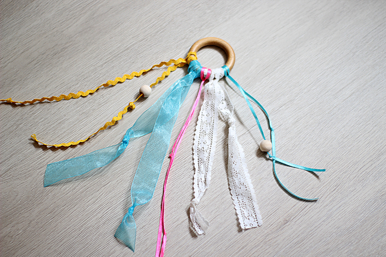 Сначала колечко можно подвешивать на ребенком, раскачивать, а позднее выйдет отличный дергунчик.