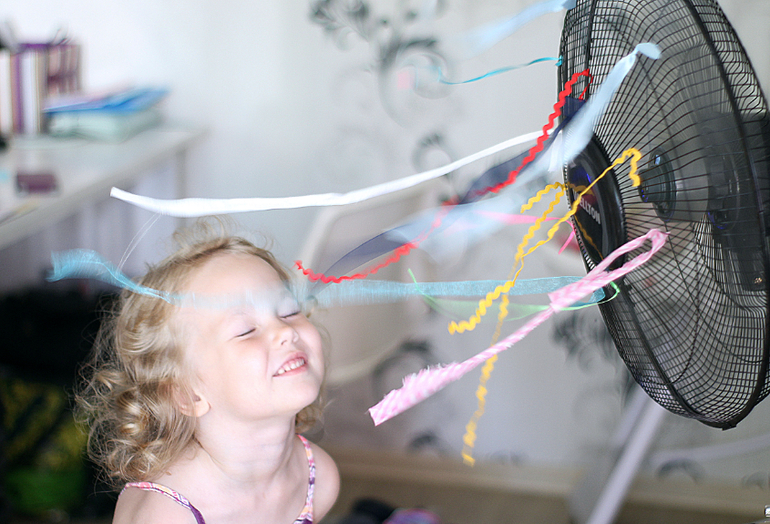 Вентилятор с ленточками. Тут Варя развлекается, но Тасе тоже досталось )