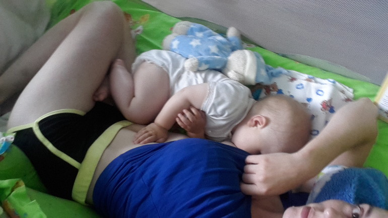 Потом стала забирать под утро к себе.... К 5,5 мы пришли к совместному сну.... По началу вроде ничего... Перекидывай себе дите через себя с одной тити на другую...вроде как и жизнь налаживается и папа наш спит, довольный что наследник не вопит.... Но недолго музыка играла