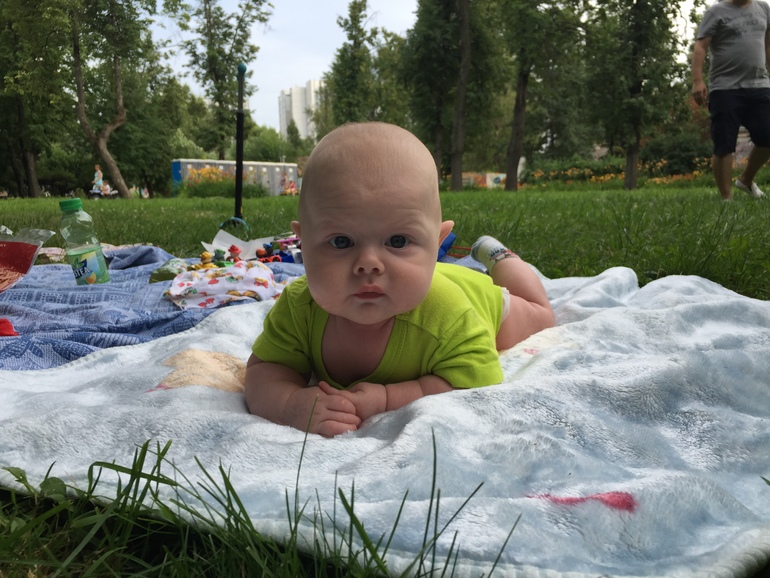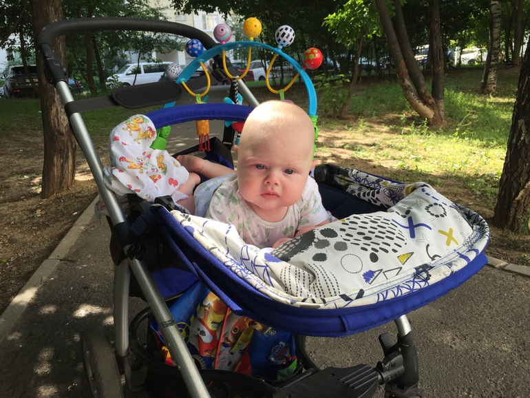 Все время руки во рту , гуляем глазеем , в коляске не хочет лежать надо на ручках глазеть ) сегодня пересели в прогулочный блок , мой огромный малыш не помещается в люльке ...жаль