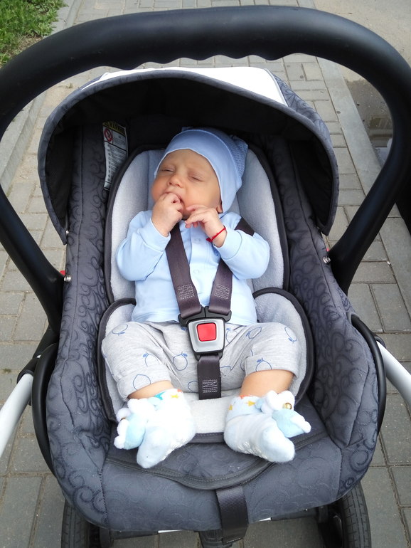 Мы научились следить за игрухами на карусельке, улыбаемся всем подряд)) пытаемся смеяться, но пока только во сне)) ленимся держать голову на животе и очень жадно кушаем! Вот такой у нас ленивый жадина))) не нравится уже в люльке кататься, гуляем в автокресле) и жуем кулаки...