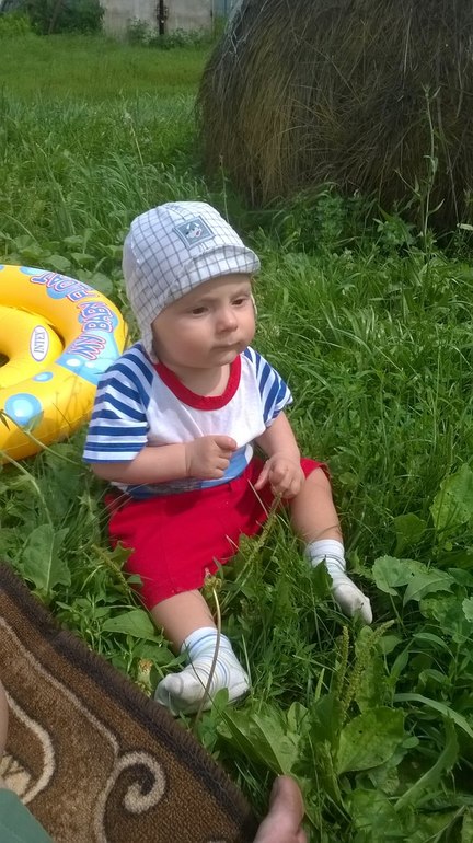 ХвастаемсяМесяц очень богатый: умелки, поездки, новое питание. К врачу пока не ходили, наша любимая педиатр в отпуске, а к другим, после печального опыта, не ходим. Так что ростовес пока не знаю, но чувствую приличную прибавку , как ни как ездили к бабушке в деревню. Она увидев рёбрышки малыша ахнула и скрылась с ним на кухне на весь период нашего прибывания (шутка))... И так,первое событие это ещё два зуба, теперь у нас два нижних и четыре верхних, лезли почти безболезненно. Вооружившись зубами мы поехали к бабушке в деревню, расстояние приличное: 750км. Женя дорогу перенёс не просто хорошо, а идеально), спал каждые полтора часа и такое же время бодрствовал. Не капризничал, всё время крутил головой, всё разглядывал. Кушали и пили не останавливая машину, остановки делали только для смены подгузов. Прибыли. Как я уже писала бабушке стало дурно от вида тощего внука и она взялась за его питание. Для меня это был ад и ужас, я пыталась ругаться, объяснять, грозила увезти малыша...пофигу! Перечень продуктов введённых за две недели (сразу в огромных количествах): Малина, клубника, смородина, крыжовник, пряник, сахар, соль, молоко ПАРНОЕ, сметана, макароны, пельмени, кабачок сырой, творог (свой)...и +бесконечность. Я не знаю каким чудом, но ребёнка ни разу не обсыпало и стул (извиняюсь) не изменился. Я уже плюнул, сказала: "делайте что хотите" и успокоилась. Бабушка дала мне отдохнуть, всё свободное время была с внуком. За это ей огромное спасибо. Ещё мы, наконец-то, научились делать ладушки, иногда ни к селу ни к городу начинает хлопать и (как мне кажется) привлекает этим моё внимание. Научились плеваться и цокать язычком (типа как скачет лошадка) .Ещё показывает глазки у игрушек и у мамы. А главное событие это наше первое слово! Нет, не "мама" и "папа" и даже не "дай", а "АМ". Когда видит что кто то кушает, видит тарелку с едой, когда я хочу посадить в стульчик для кормления или просто даю сухарик в руку, ещё когда говорю: покорми маму, он мне в рот суёт то, что у него в руке (печенька. огурчик). Ходить пока не ходим, но очень любит когда за ручки с ним гуляешь. Снов три, но ночью уже почти не просыпаемся. Последнее время стал более усидчив и начал нажимать на маленькие кнопочки и изучать всякие мелкие предметы. Вот такие у нас новости к десятому месяцу. Вот, наверное, и всё...Всем бобра и много умелок)