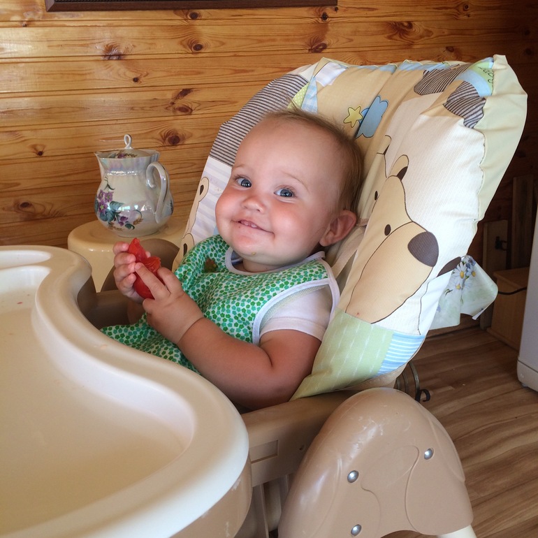 Оля кушает помидорку