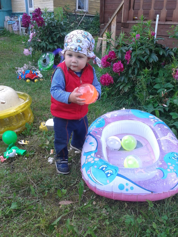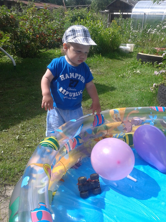 Мишутка готов жить на улице - притом в бассейне или в песочнице...в дом тащу с криками))