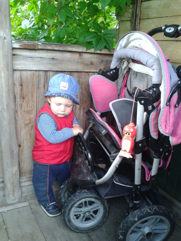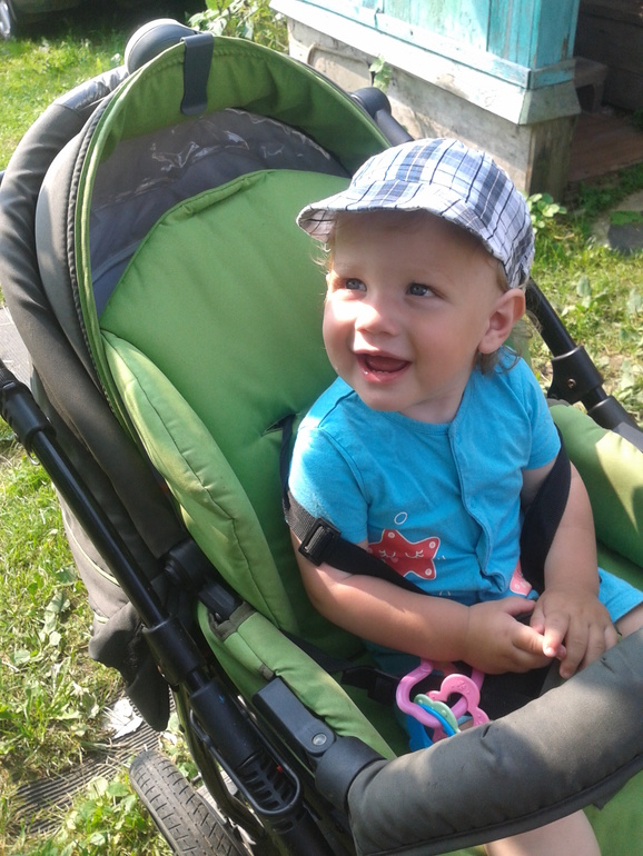 Если Кристи до сих пор колясочница, то Мишутка любит бегать! В коляску проситься, когда устает, но это бывает редко))) Доча счастлива...ведь она едет на коляске...