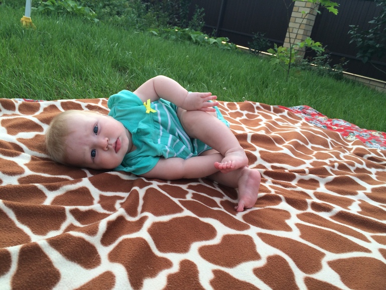 Легко сейчас уже вертиться во все стороны, через любой бок. Разворачивается на 360 градусов на пузе, ползает как червячок и прыжками. Сегодня встала на четвереньки с вытянутыми ручками. Сфоткать не успела)))) как всегда сначала офигела, поумилялась и только потом вспомнила что надо заснять)