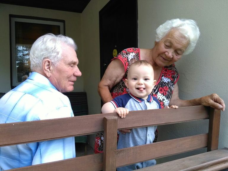 Джанечка очень полюбил дедушку. Это просто что-то невероятное! Они теперь лучшие друганы ) как только завидит его вдалеке, сразу сияет весь, повизгивает и вырывается к нему )