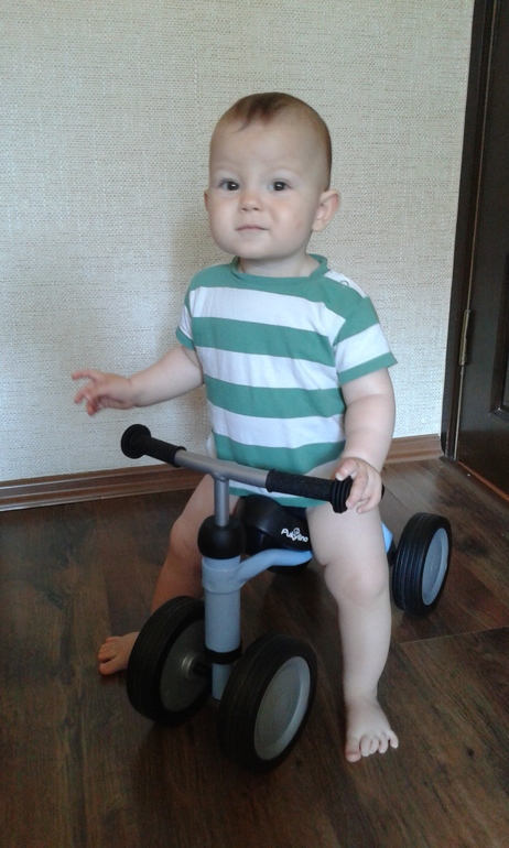 Купили Джаньке беговел! Двигающаяся штуковина очень завлекла его сначала, но сидеть на нём боялся ) потихонечку привыкали. Сейчас уже сам ножки переставляет, но пока без особого энтузиазма. Мне кажется, он ещё не понял какая это классная вещица ) да и сейчас, пожалуй, ему намного интереснее осваивать самостоятельное хождение.