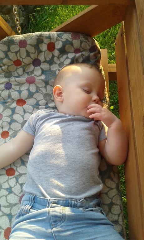 Приезжали мои бабушки и дедушка, все вместе большущей семьёй жили несколько дней на даче. Было очень здорово, но немного и утомительно. Все наперебой хотели с ним повозиться ) я иногда его спасала )))