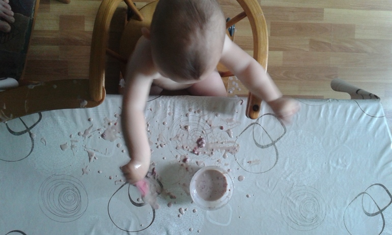 Вылезли, наконец-то, четвёртые зубки с правой стороны вверху и внизу, которого ждали аж с 5 месяцев. Жуём уже всё. Бабушкины супчики немного вилочкой помну и ест, овощи так же. Хочу по приезду домой дать ему возможность самостоятельно справляться с едой. Пока это только возюканье руками в тарелке ) но я совсем не против и этого. Просто дома простора больше и надзирателей меньше ))