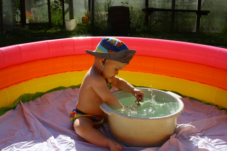 Так же мы очень радуемся наличию большой ванны! Сажу его, включаю воду, даю кастрюли-ложки и всё ) радости - не передать!