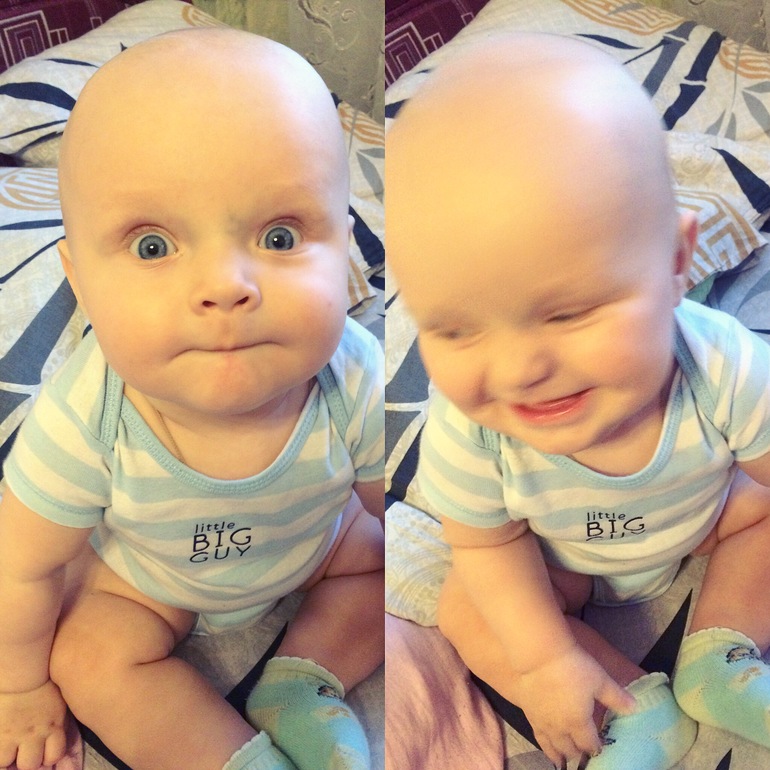 По месяцам наверно описывать не буду (и так пост длинный), скажу только что все, что должен делать малыш в 6 месяцев мы умеем;) Когда сам сел, стал сам играть минут по 30,что заметно облегчает мне жизнь)) А так крутится-вертится как юла, ползает на животе,смеётся постоянно, очень громко разговаривает на своём языке на весь дом😆