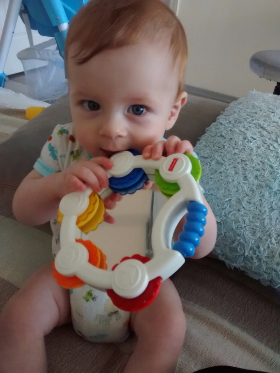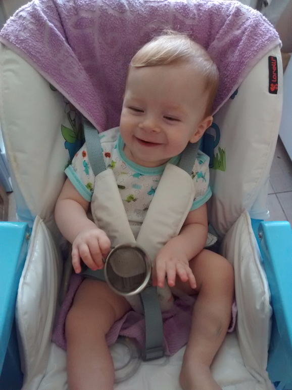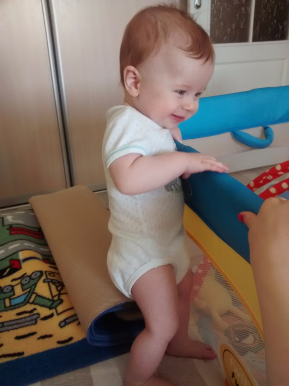 Из физического развития - рост 68 см и вес 7700 - вот такие мы миниатюрные. Илюха очень активный, ползает везде, слазит\залазит на диван по подушкам, ползает по всей квартире (конечно, там где мы ему разрешаем), встаёт на ножки у опоры, может сделать пару-тройку шагов, любит ползать с папой наперегонки. Активней взаимодействует с игрушками, уже понимает что к чему - бубен звонит, колёсико крутится, молоточек стучит и т.д. 13-го июля у нас вылез первый нижний зубик, спустя день - еще один, теперь мы обладатели двух зубов) Их прорезывание прошло очень тяжело, болезненно, с высокой температурой, честно говоря, я очень переживала. Не знаю, как будут прорезываться верхние, очень надеюсь, что легче.