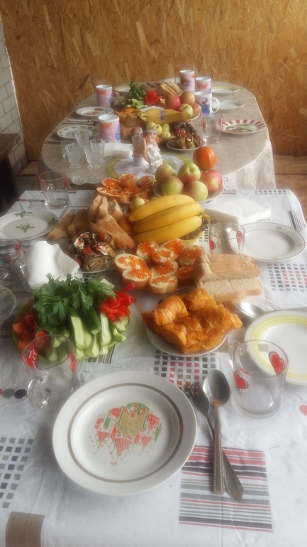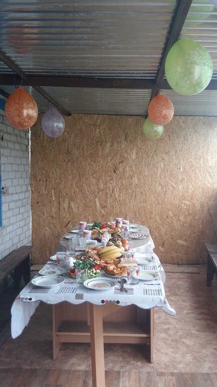 итак, как писала отмечали на даче. Решили на второй день, так как Ника да и мы все устали. Тем более служба закончилась в 3, ехать поздно.