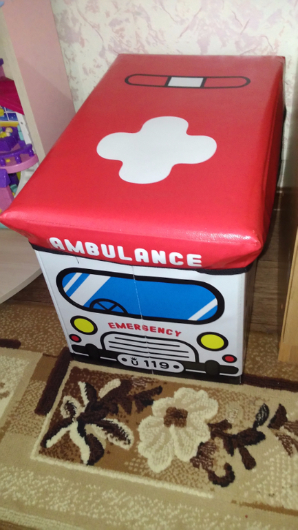 Для хранения игрушек младшей дочки купила вот такой замечательный короб, он выдерживает до 80 кг, не знаю как 80, но меня весом в 66 кг (это во время беременности) выдержал. Ну а дизайн выбрала старшая дочка, так как она помешана на спец машинах. а особенно на скорой помощи и врачах. Вообще для деток рекомендую не контейнеры, а полочки, чтобы все игрушки были в доступе, когда все игрушки свалены в контейнеры, это не очень удобно в первую очередь для малыша, поэтому у меня в детской несколько стеллажей для игрушек, очень удобно, так как ребенок видит все его игрушки и может выбрать одну понравившуюся, кроме этого, при желании игрушки на стеллаже можно менять (одни игрушки убрать совсем, а другие выложить и так каждые 2 недели).