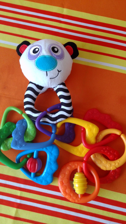 Очень удобная и легкая игрушка-грызунок, одна из первых игрушек, которая дочка стала активно перебирать из ручки в ручку.