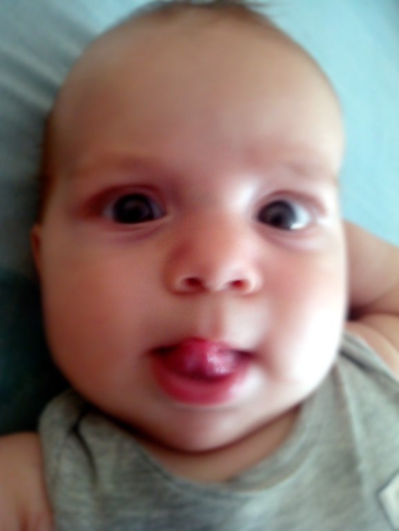 Вот уже пару дней , как научился показывать язык , он таким образом чешет себе десна.