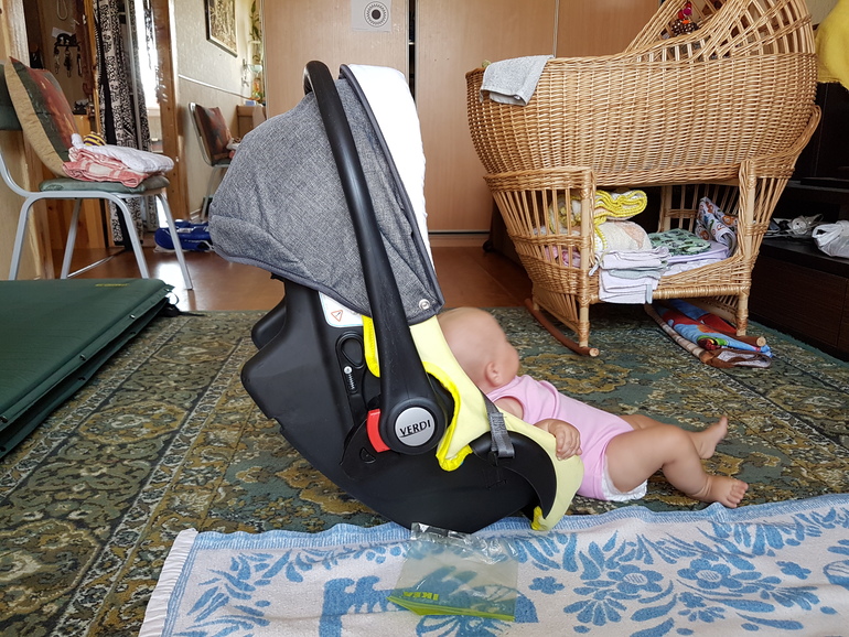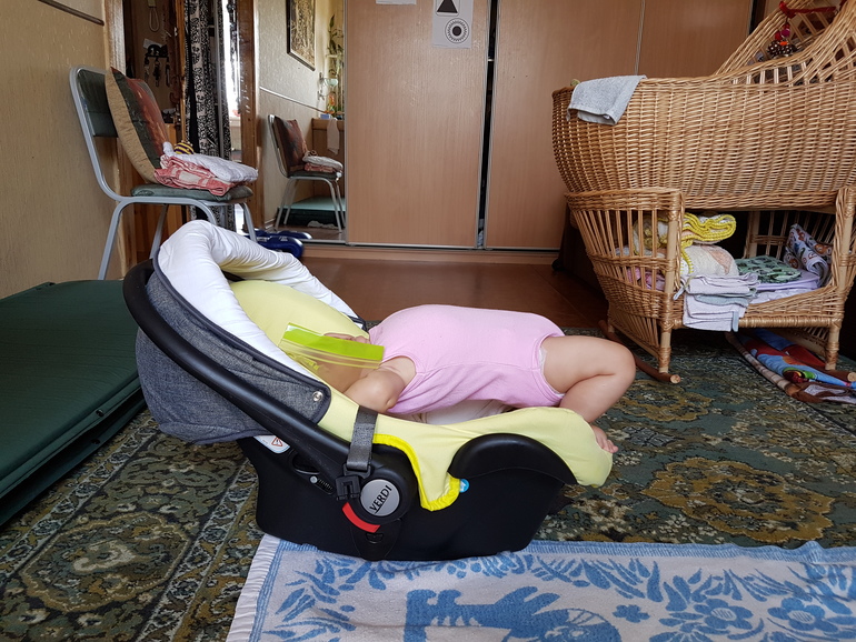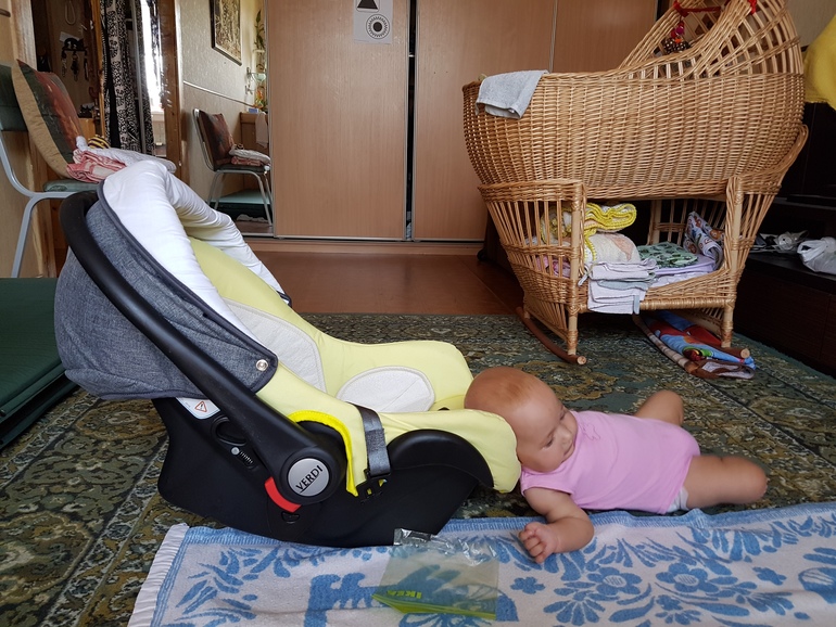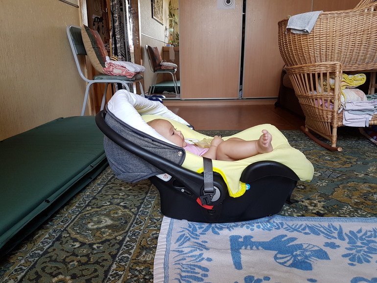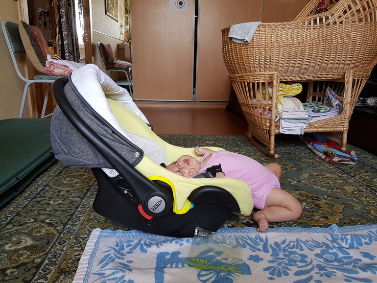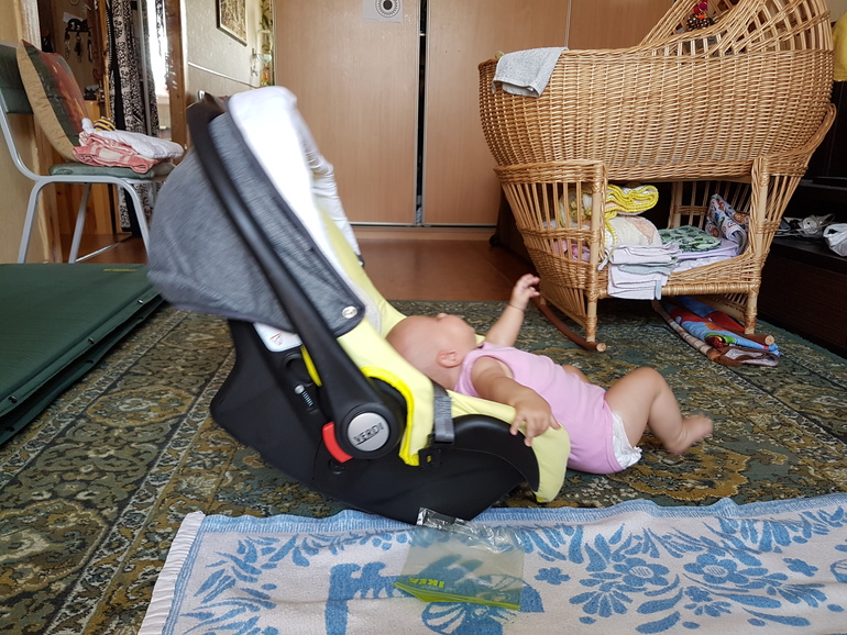 Ну да, это автокресло/переноска/шезлонг. Если пристегнуть ремнями то получишь яростный протест)