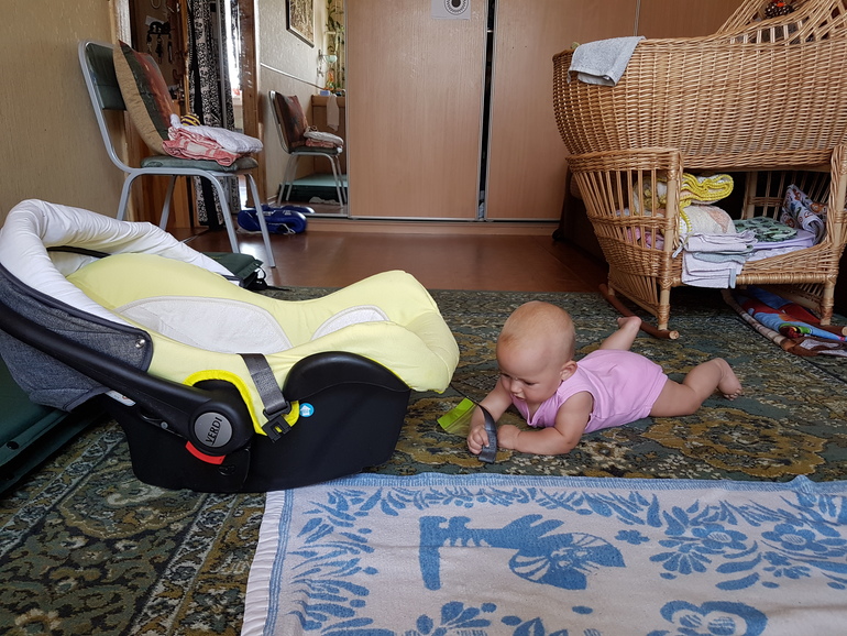 Сообразительная малышка)))) только это вроде ж автокресло и внутри есть ремни, чтоб не сбегала ))