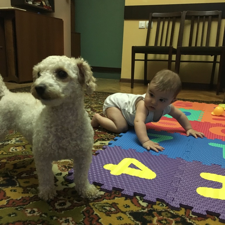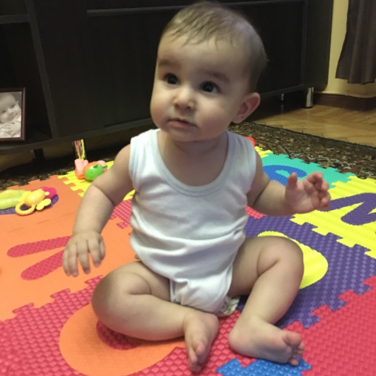 Миленький какой)!у нас такой же коврик)Шуш он сам садиться уже или ты помогаешь?