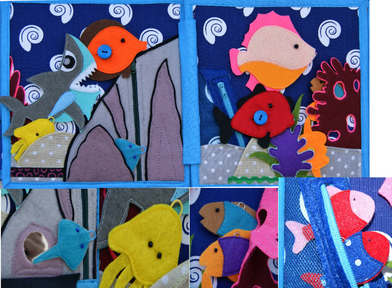ИгрыВсем привет. Сшила мелкому очередную книжку (видимо, будем солить))). На данный момент она - моя любимица))) Давно хотела, чтобы рыбок можно было ловить на удочку))) Всех-всех-всех. Вы можете представить кита, пойманного на удочку?))) А мы таки ловим. Правда Мишка пока чуток в шоке от процесса)))