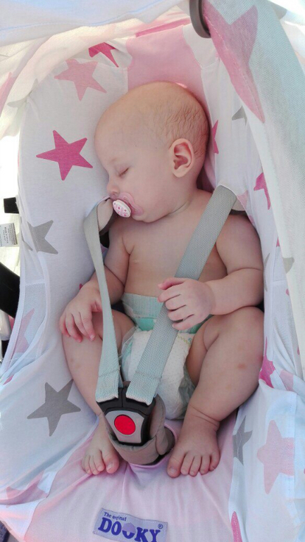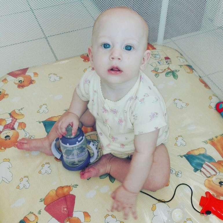 В развитии случился грандиозный прорыв, в 5 мес поползла, в 5,5 села и встала у опоры. Теперь в манеже её вообще не удержать, гуляет по квартире, залезает в коробку с игрушками брата, встаёт везде, где находит опору, например, у Темкиного велосипеда. Поначалу падала много, все ножки в синяках. А сейчас научилась садиться аккуратно, на попу.
