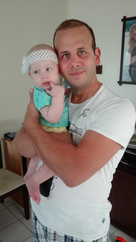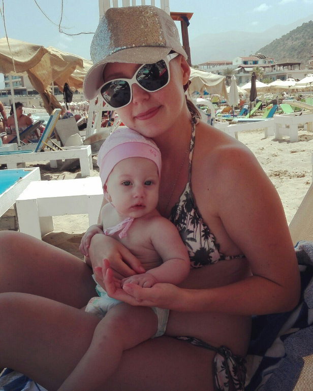 Хорошая, улыбчивая девчонка растёт. Позавчера мы её впервые окунули в море, спокойно сидела у папы на руках, трогала водичку.