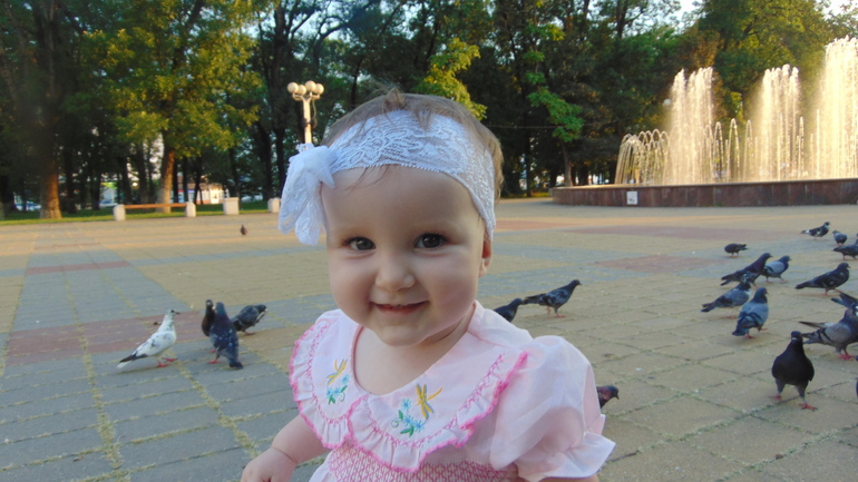 Говорит мало чего: мама,баба и слоги на-на,да-да,га-га,бадя, что-то начинает уже лепетать.Развиваемся хорошо! С сестричкой дружим и играем! К чужим не идем вообще. Не любит она их. Рост где-то 72-73, маленькая она, а вес около 10кг.