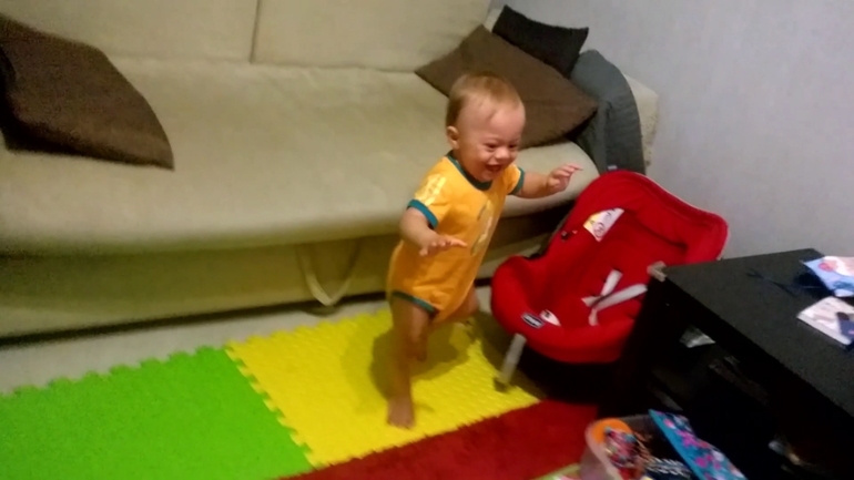 10. Главная умелка месяца: Макс пошел!!!!! Теперь уже носится от опоры к опоре через всю квартиру, на площадке сам идет к качелям. От квартиры до площадки идет за ручку, потом бросает мою руку и сам идет к качели. Правда, не всегда удачно.