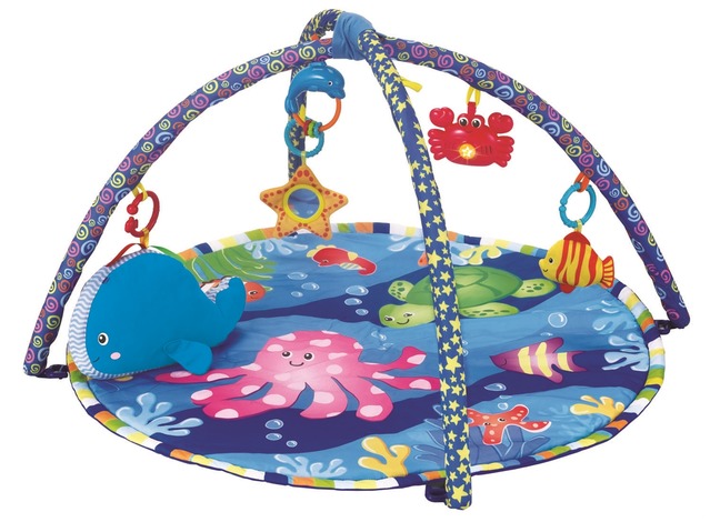 ИгрыРебенку почти 1.5 месяца. Купили развивающий коврик Winfun Океан. Коврик классный, мне понравился. Не очень большой, 2 дуги с петельками для крепления игрушек. Большой кит, музыкальный краб, рыбка с пищалкой, звездочка с зеркальцем и дельфин с погремушкой. Игрушки можно менять. Пробую его туда выкладывать. Смотрит на краба, когда включаю на нём мелодию. Улыбался, когда увидел зеркальце (может понравилось, может просто хорошее настроение было))). Минут 10-15 вообщем может полежать, поудивляться. Но пока конечно ему больше нравится, когда я с ним просто разговариваю и нахваливаю его)))Он тогда во всю улыбается и агукает. Пупсик мой😊