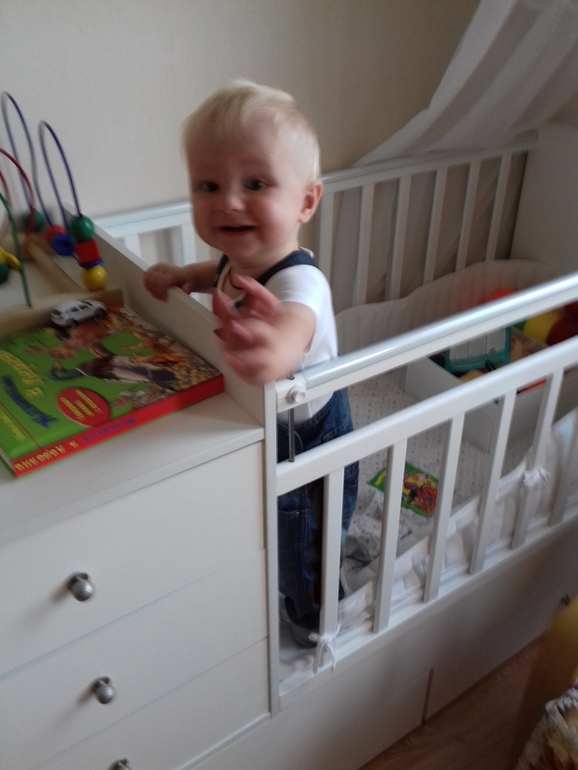 Очень гоняется за мной , даже если в одной комнате , обязательно надо что бы взяла на руки , в итоге готовлю и ем на одной ноге . Если посадить в стульчик , максимум хватает на 10 минут. Ходунки и прыгунки нам нельзя из за тонуса. Начал так гоняться когда верхние зубы полезли.